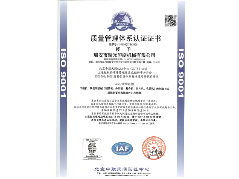 溫州市瑞光印刷機械有限公司是生產銷售凹版印刷機、復合機、分切機、制袋機等設備的廠家。 主打產品“機組式經濟型凹版印刷機”暢銷國內各省市,并遠銷歐洲、東南亞等十多個國家。長期以來,公司致力于印刷包裝機的研究、開發及生產,利用瑞安這個“中國印刷機械設備城”之得天獨厚的生產和加工優勢,博采眾長,不斷研究、提高、完善,使產品逐步突顯其性能和可靠性.....